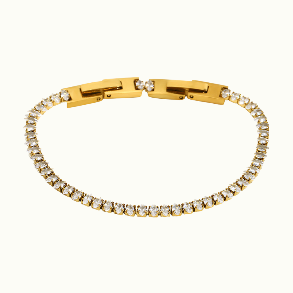 The Celeste Bracelet redefines the classic tennis silhouette with a refined edge.