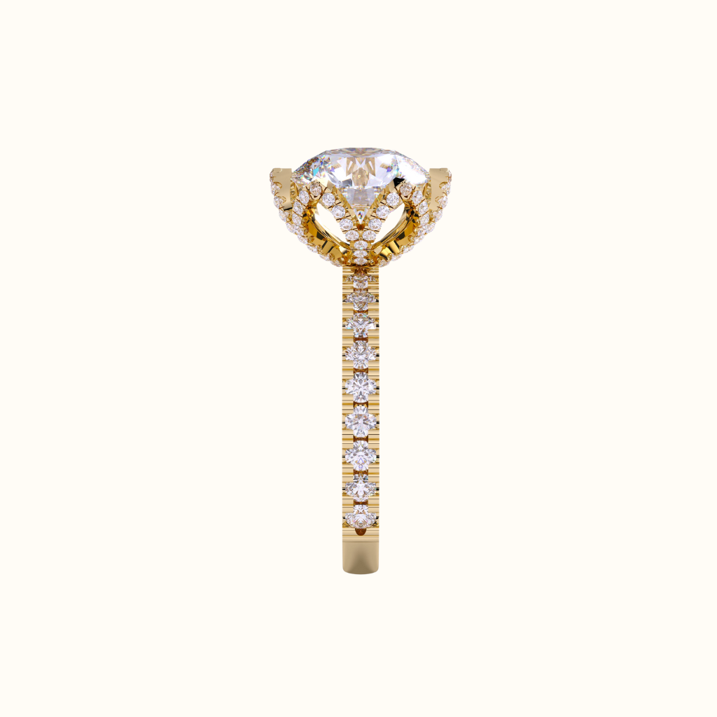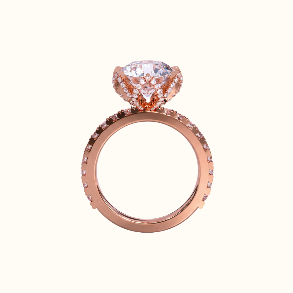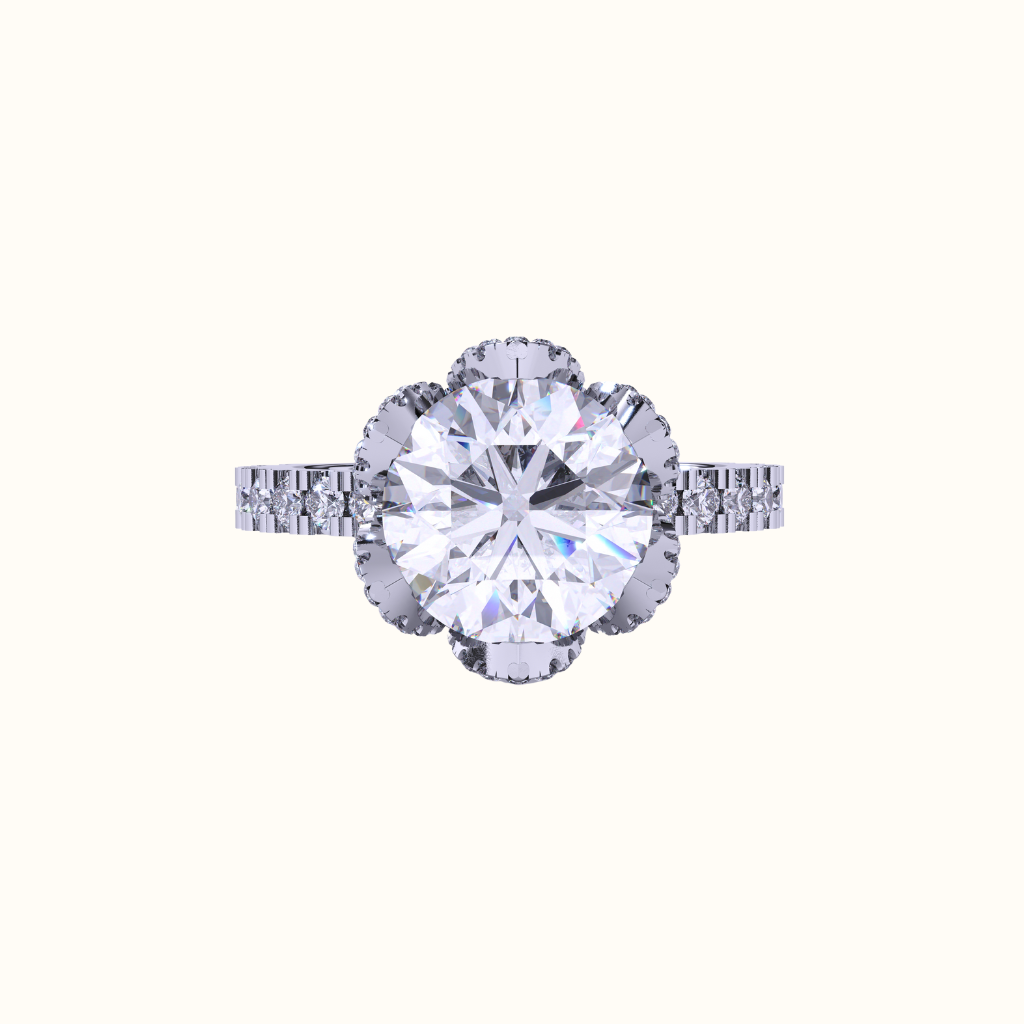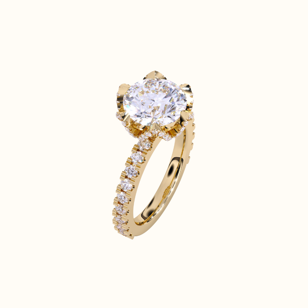 The Flora Ring captures the essence of bold romance with a sculpted tulip-inspired setting that cradles a brilliant 3-carat round lab-grown diamond.