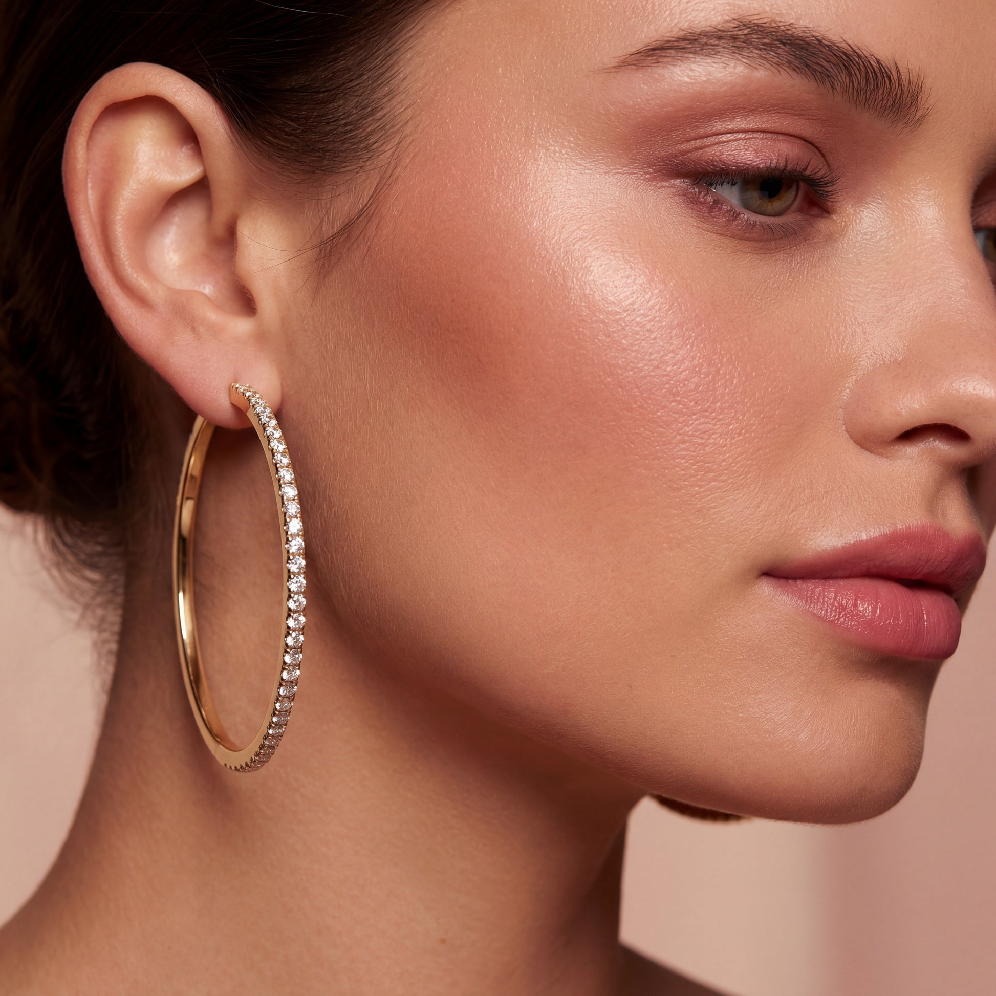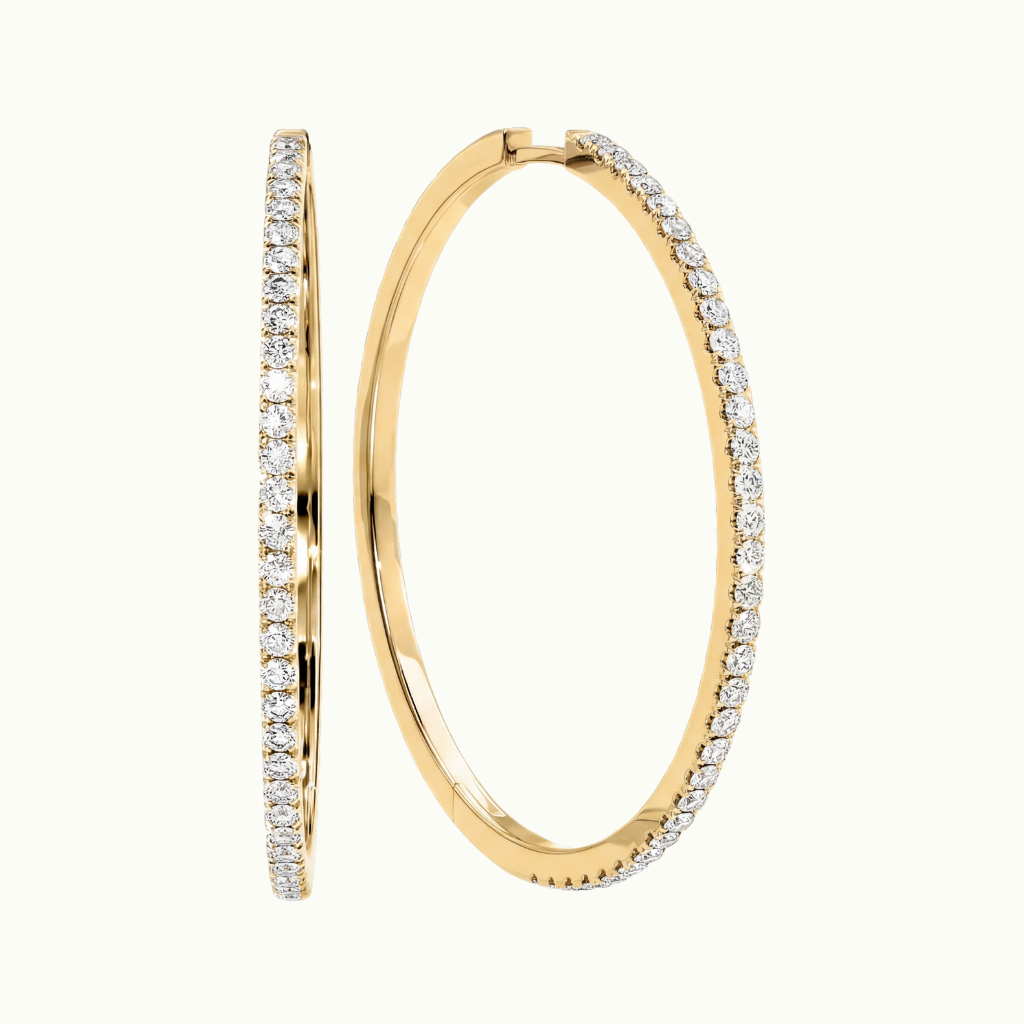 A seamless row of round brilliant-cut lab-grown diamonds is pavé-set in polished 18k gold, creating a 40mm hoop that captures light from every angle with effortless radiance.