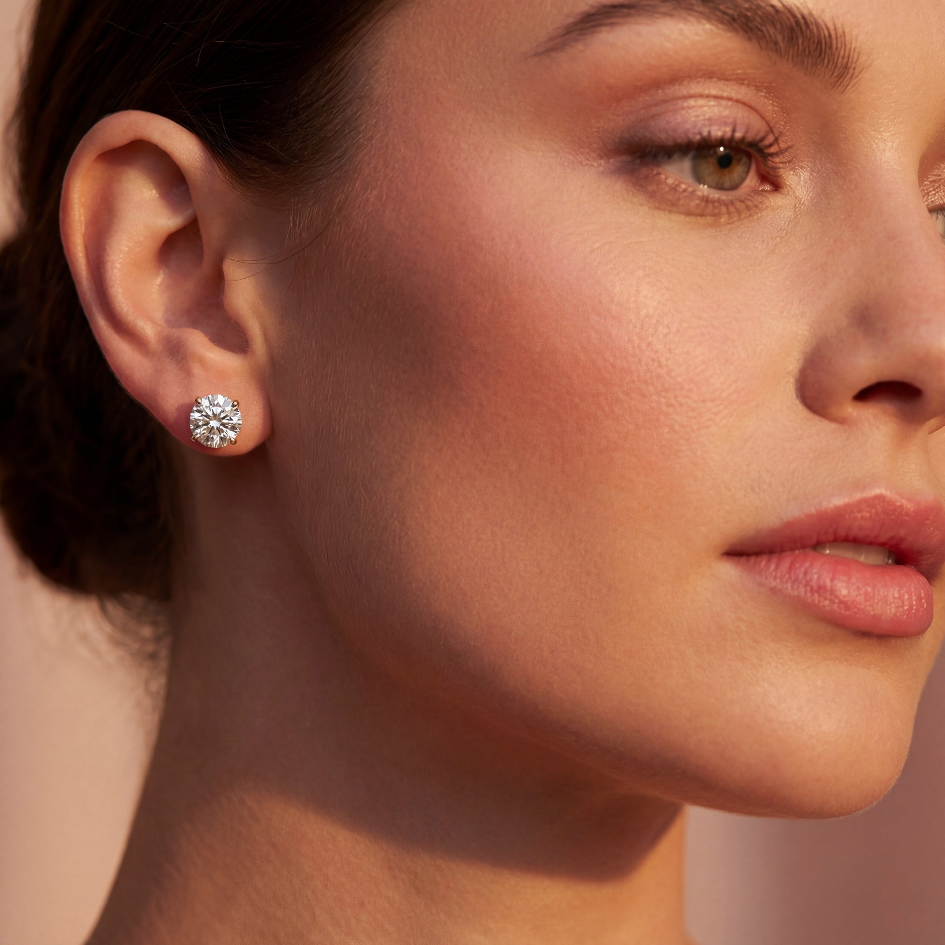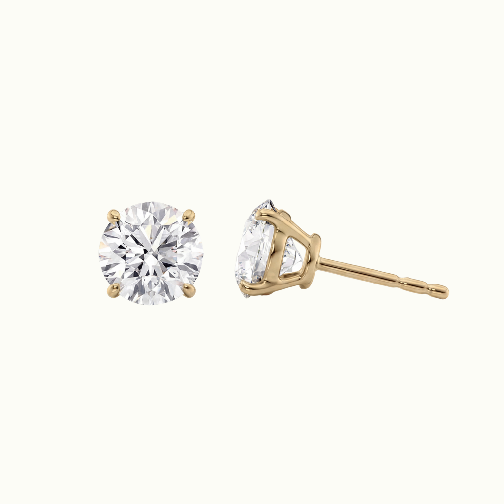 Each round brilliant-cut lab-grown diamond is secured in a classic four-prong setting of polished 18k gold, allowing maximum light to dance through every facet with breathtaking fire.