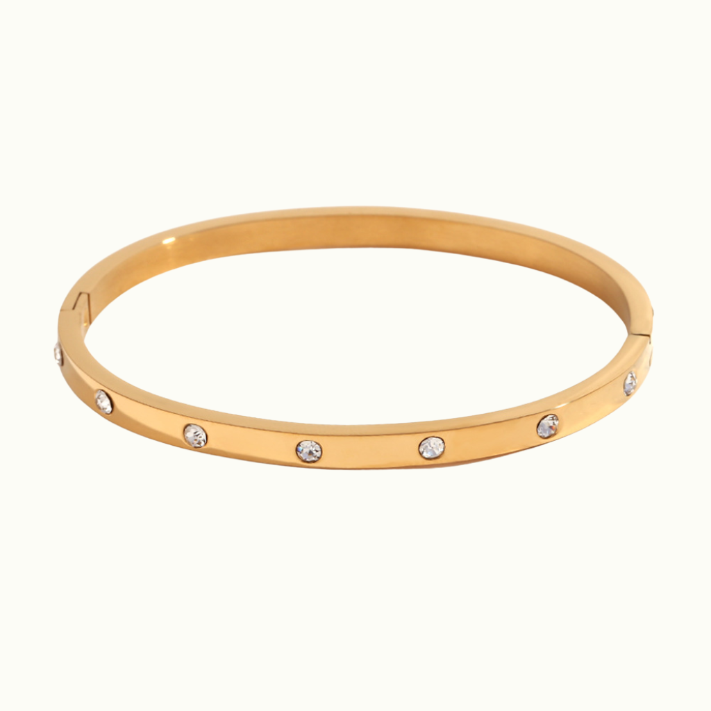 The Orion Bracelet brings quiet brilliance to sleek design. Set with evenly spaced lab-grown diamonds along a polished 18K gold bangle, it’s a refined statement that catches light with every move. Designed for stacking, styling, and timeless wear.