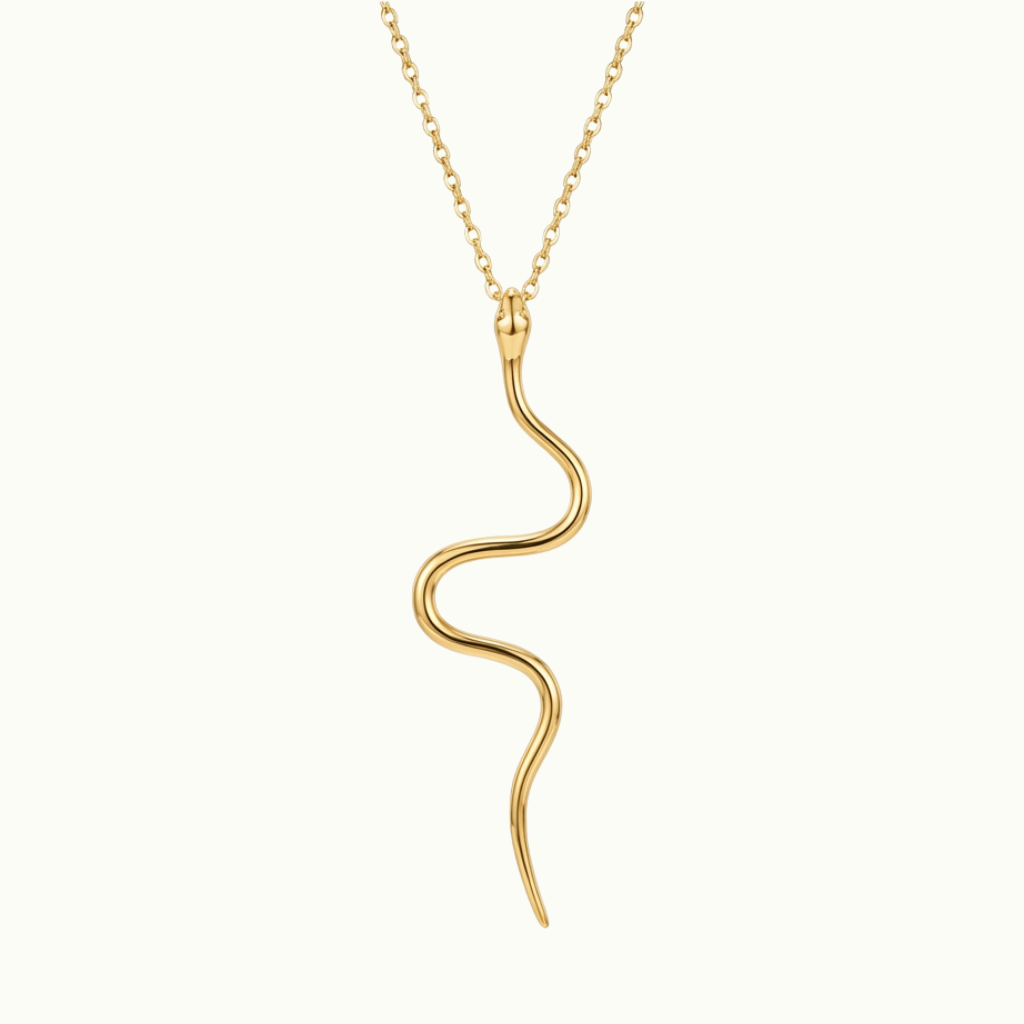 A sinuous 18k gold serpent pendant flows gracefully from a delicate cable chain, capturing the fluid beauty of nature's most iconic symbol.