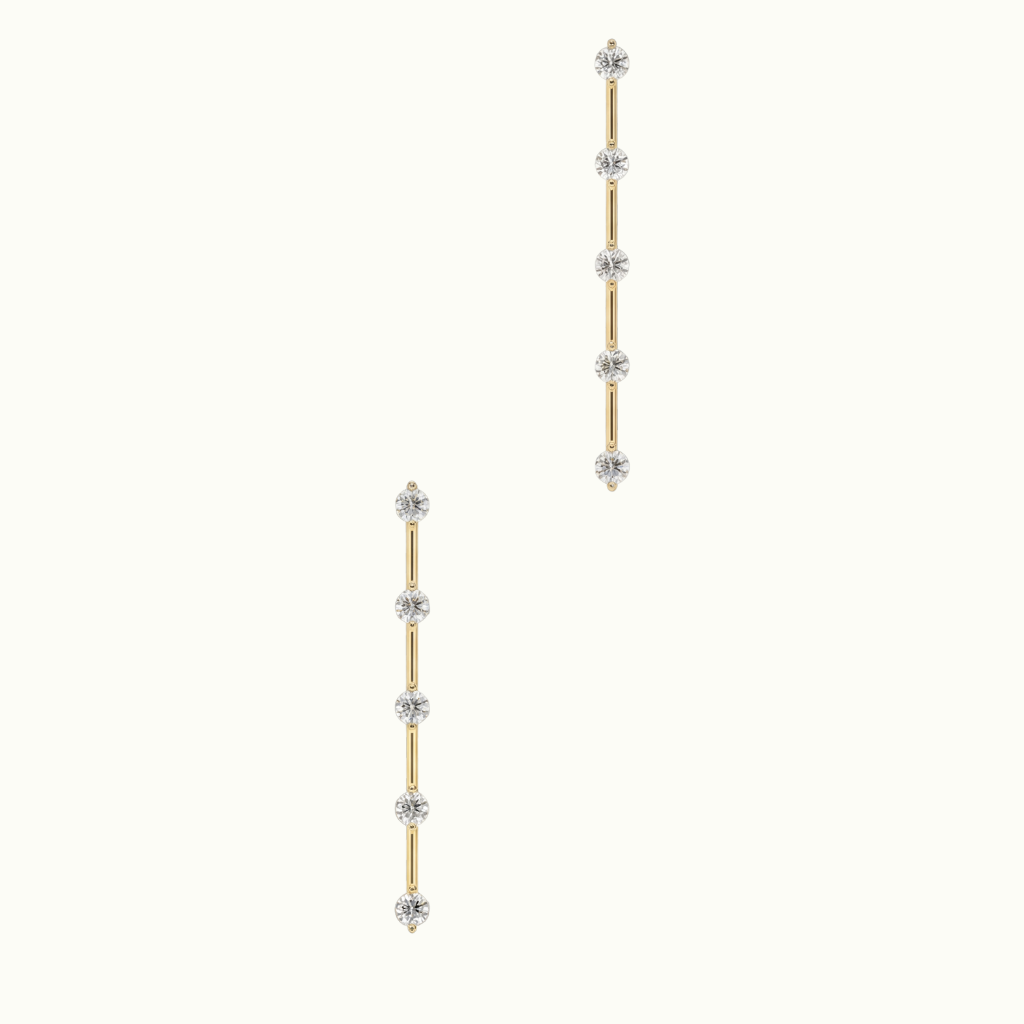 Five round brilliant-cut lab-grown diamonds are individually set along slender 18k gold bars, creating graceful linear movement that captures light with every turn while maintaining refined, wearable proportions.
